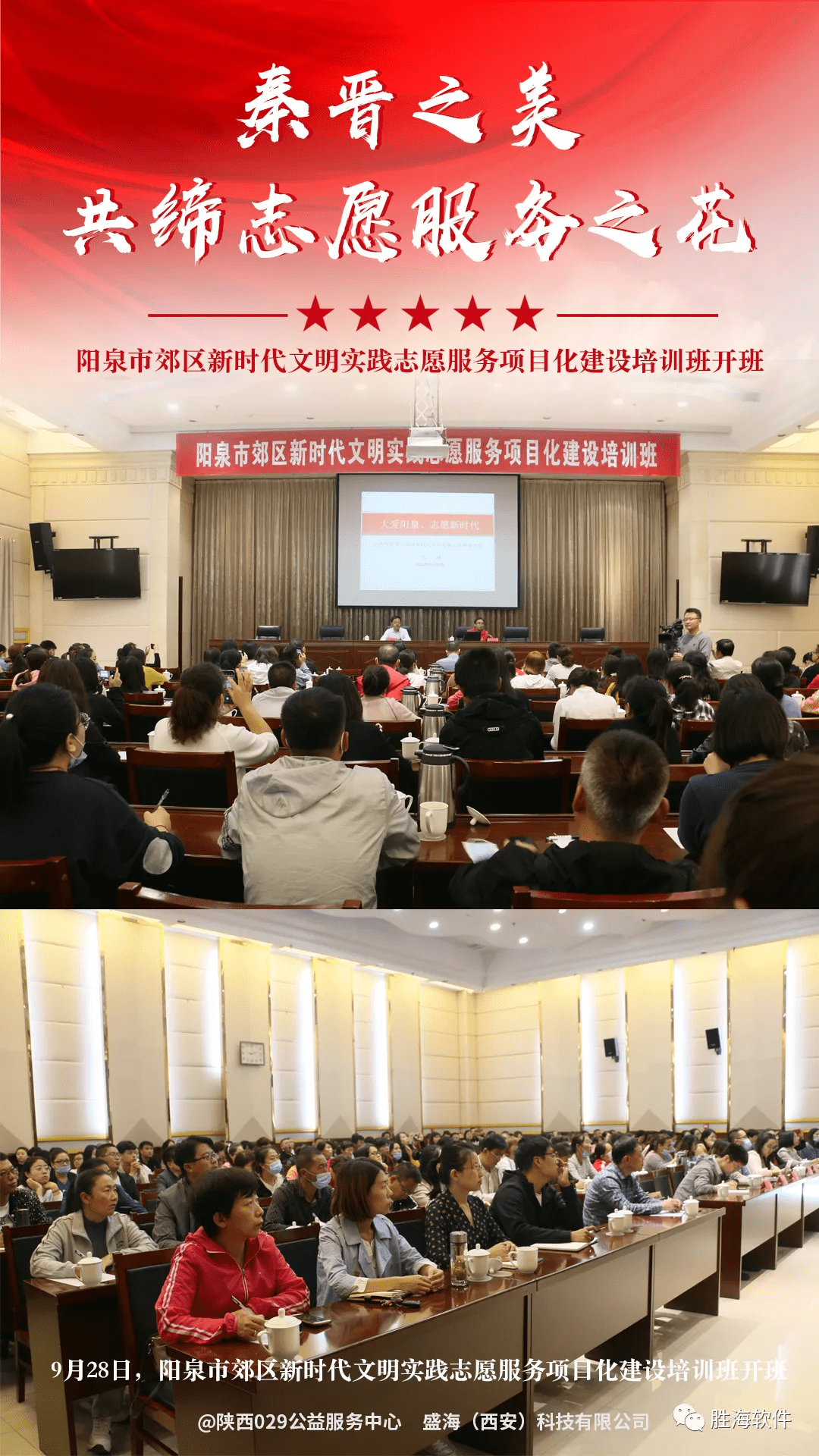 (陕西公益传媒资讯)2020年9月27-28日,2019学雷锋四个一百全国最美志愿者、志愿服务教育专家孔斌老师一行从陕西出发,受邀走进山西省进行为期两天的参访、交流和讲座。在28日上午,在阳泉市郊区做新时代文明实践志愿服务专题讲座,阳泉市文明办、郊区、城区、矿区、盂县文明办有关负责人,郊区新时代文明实践中心、站、所150余人参会。同行人员还有新时代文明实践平台软件开发项目负责人冉华胜总经理、文明一号新媒体负责人刘阿娟。
